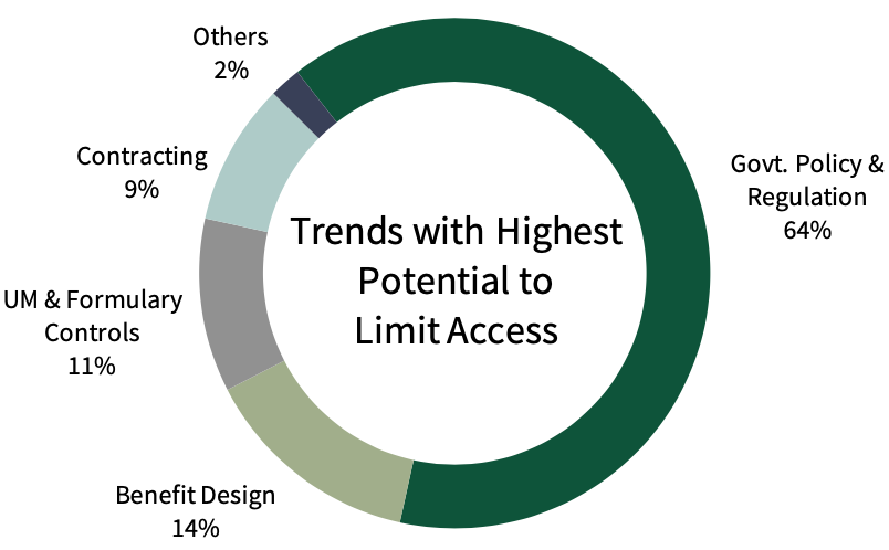 Panelists Identify Government Policy & Regulations as Top Market Trend with Potential to Limit Access. Market access trends can have a direct impact on organizational headcount. In 2026, respondents most frequently cite Government Policy & Regulations as the leading trend with potential to constrain access and shape managed markets staffing decisions.