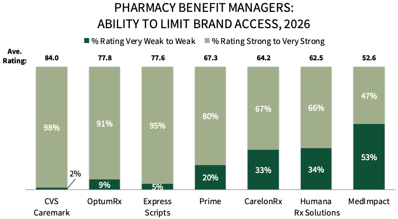 • Which PBM accounts are rated by manufacturers as most able to limit brand access? Why?
