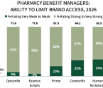 January 2026. Provides pharmaceutical firms' ratings of key Pharmacy Benefit Manager, PBM-owned GPO, Managed Care Organization, and Medical Benefits Manager accounts in ability to limit brand access and willingness to partner with manufacturers. Examines respondents' rationales driving ratings.